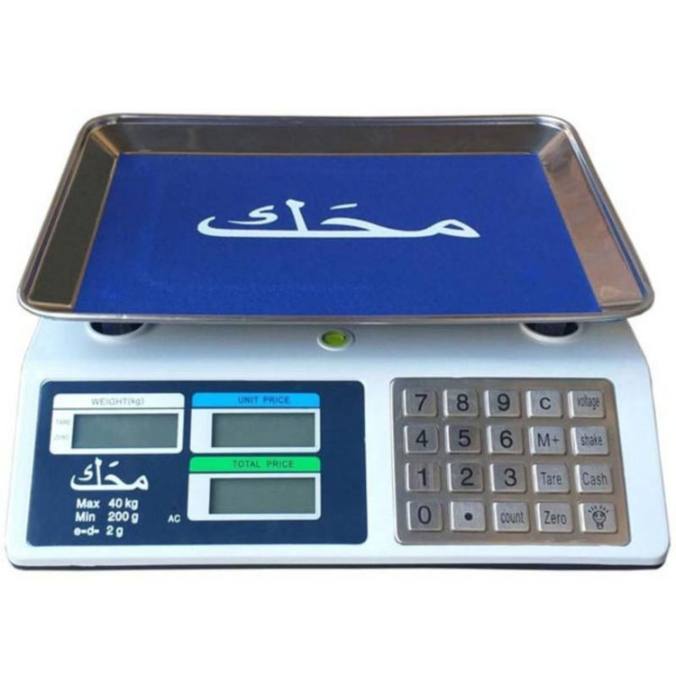 مشخصات فنی مشخصات ابعاد محصول 10×32×32 سانتی متر حداکثر وزن قابل توزین 40000 گرم دقت 2 گرم سینی دارد نوع سینی لبه دار ابعاد سینی 35×25 سانتی متر تعداد مشتری همزمان 1 نفر نوع نمایشگر LCD تعداد ارقام قیمت 5 رقم تعداد ارقام قیمت کل 6 رقم تعداد ارقام وزن ۶ رقم