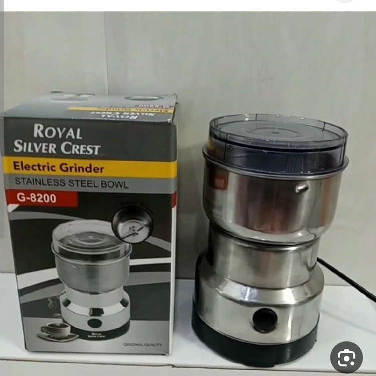 آسیاب برقی مارک سیلور کرست Silver Crest ● تیغه های فلزی ● مدل_8200 ●درب شفاف ● کلید ایمنی درب ● دانه های قهوه ،برنج ، مغزیجات،.... را آسیاب میکند ●ولت ۲۲۰-۲۴۰ AC ۵۰/۶۰ هرتز ● توان مصرفی ۳00وات ●تیغه های فولادی ●ضد زنگ یا استیل ضد زنگ ● درب بالایی شفاف ●جنس بدنه استیل و پلاستیک ●مخزن داخلی فولاد ضد زنگ ● عملکرد :کلید فشاری ● آسیاب قهوه، زعفران، ادویه، هل، خشکبار، برنج ، دانه های ریز و درشت را به راحتی کاملا آسیاب می کند