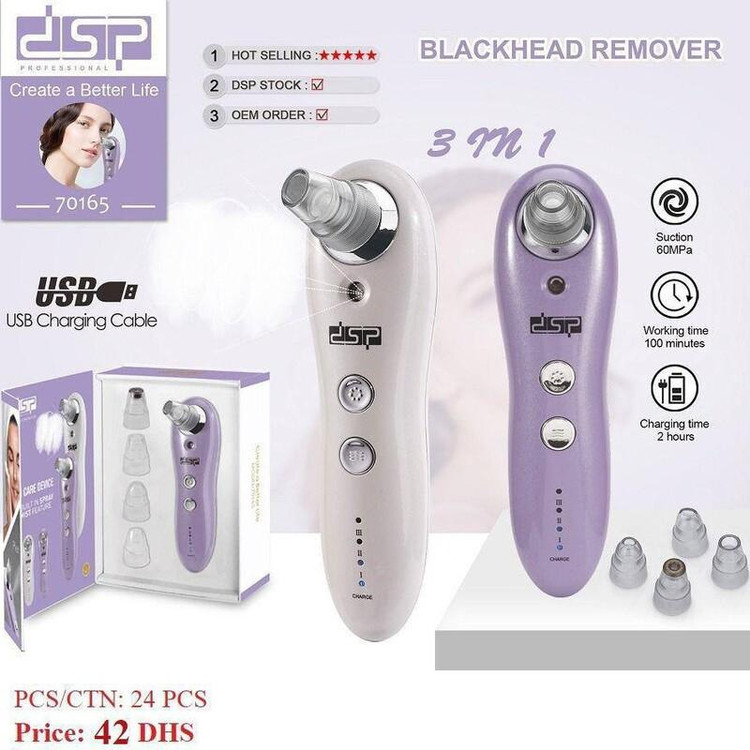 میکرودرم بخاردار DSP مدل 70165 از جدیدترین مدل دستگاه های میکرودرم آبریژن که دارای مخزن آب است می باشد.این محصول مخصوص پاکسازی پوست صورت و بدن است. بسیار سبک و خوش دست طراحی شده و در رنگ یاسی در بازار موجود می باشد. موتور دستگاه بسیار قدرتمند و با مکش عالی طراحی شده است. منبع تغذیه آن باتری قابل شارژ است و به وسیله کابل USB شارژ می شود و دارای چراغ نشانگر شارژ دستگاه می باشد. به همراه این محصول 4 سری مخصوص با کارایی های متفاوت مخصوص نواحی خاص صورت و بدن طراحی و ساخته شده است و دارای سری الماسه نیز می باشد. همچنین دارای چراغ کمکی برای انجام پاکسازی در فضای کم نور می باشد. میکرودرم DSP دارای کارایی و قابلیت های زیادی می باشد که از جمله آنها می توان به پاکسازی و لایه برداری کامل پوست،پاکسازی صورت از جوش و آکنه و پاکسازی جوش های سرسیاه اشاره نمود. قدرت و حجم بخار عالی این دستگاه،آن را حرفه ای و قدرتمند در انجام پاکسازی پوست ساخته است. از این میکرودرم می توان در منزل و سالن های آرایشی استفاده نمود