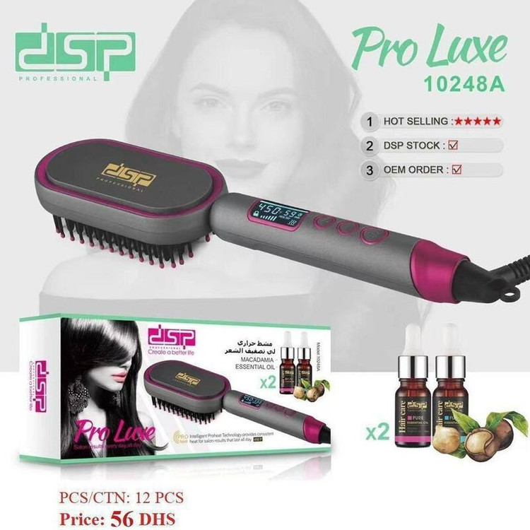 مشخصات خاموشی خودکار پس از 60 طول سیم 2.5 متر نوع نمایشگر LCD اقلام همراه دو عدد روغن مو با حجم 10 میلی لیتر امکانات ابزار سیم گردان قابلیتهای ابزار فرم دهنده مو قابلیت تنظیم دما جنس صفحات سرامیک گسترهی دما 160 تا 180 درجه سانتیگراد نوع صفحات پهن