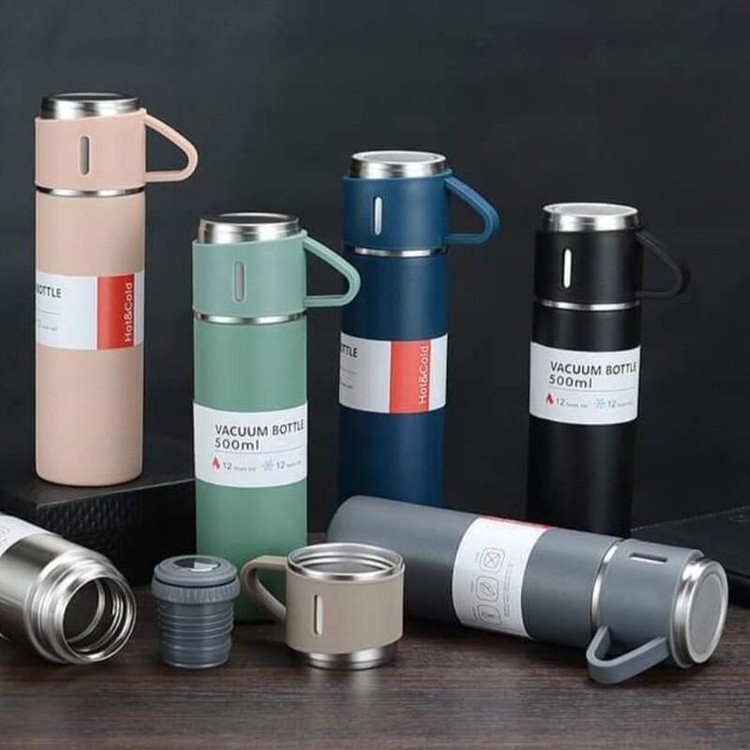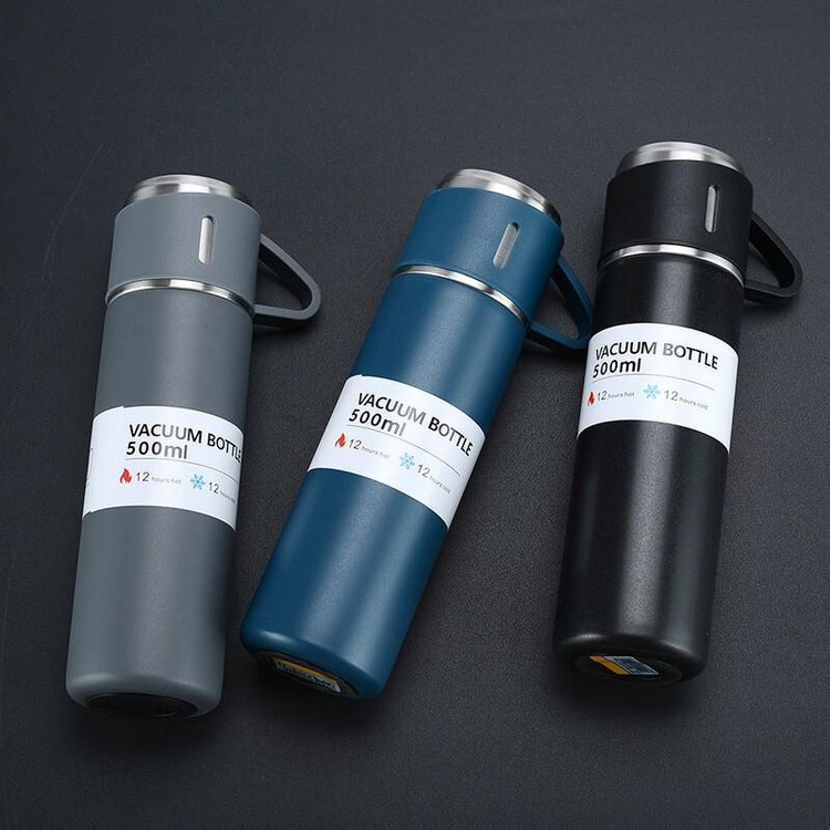 لاسک استیل با 3 لیوان دارای جعبه و ساک لاکچری فوق العاده شیک و مناسب هدیه گنجایش 500 میلی لیتر دارای روکش سیلیکونی امکان کادو پیج کردن و ارسال هم وجود دارد