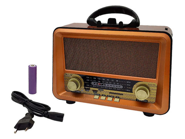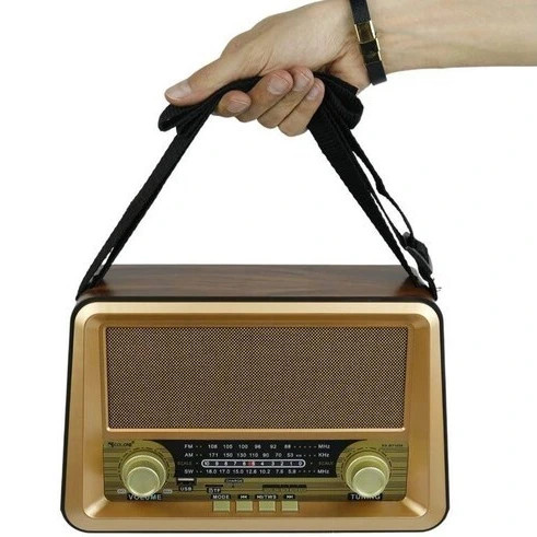 | امکانات و قابلیتها | اسپیکر بلوتوثی قابل حمل قابل استفاده رودوشی رادیوسنتی طرح قدیمی 3 باند قابلیت اتصال کارت حافظه از نوع TF قابلیت اتصال از طریق بلوتوث پخش موزیک و صدا گوشی و دیوایس با اتصال bt |