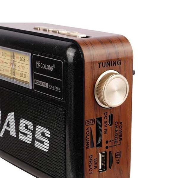 | امکانات و قابلیتها | - نوع اتصال بی سیم از طریق بلوتوث - پشتیبانی از فلش مموری USB و کارت حافظه Micro SD - بدنه محصول ساخته شده از جنس پلاستیک و چوب مقاوم در برابر ضربه، فشار و سایر آسیب های فیزیکی - تامین انرژی از طریق دو عدد باتری خارجی سایز D یا 1 عدد باتری لیتیومی 18650 قابل شارژ از طریق پورت Micro USB - مجهز به چراغ قوه با نوردهی مهتابی، بند جهت حمل آسان و آنتن اکسترنال با امواج دریافتی رادیویی FM / SW / AM - پشتیبانی از بازه فرکانسی 88 -108 مگاهرتز در حالت FM، بازه فرکانسی 530-1710کیلوهرتز در حالت AM و 5/9-18مگاهرتز در حالت SW |