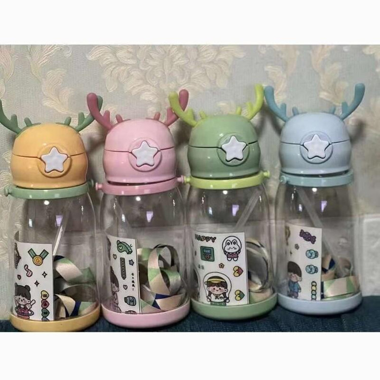 قمقمه کودک طرح گوزن حجم 500 میلی لیتر دارای نی و بند